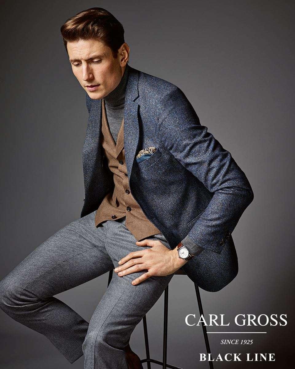 The finest details, first-class workmanship and features ensure that the traditional craftsmanship and tailoring remains evident and visible in every style, without losing sight of the contemporary spirit. In addition to business suits, shirts, knitwear, chinos and accessories supplement the collection with masculine notes. CARL GROSS – a fashion statement…