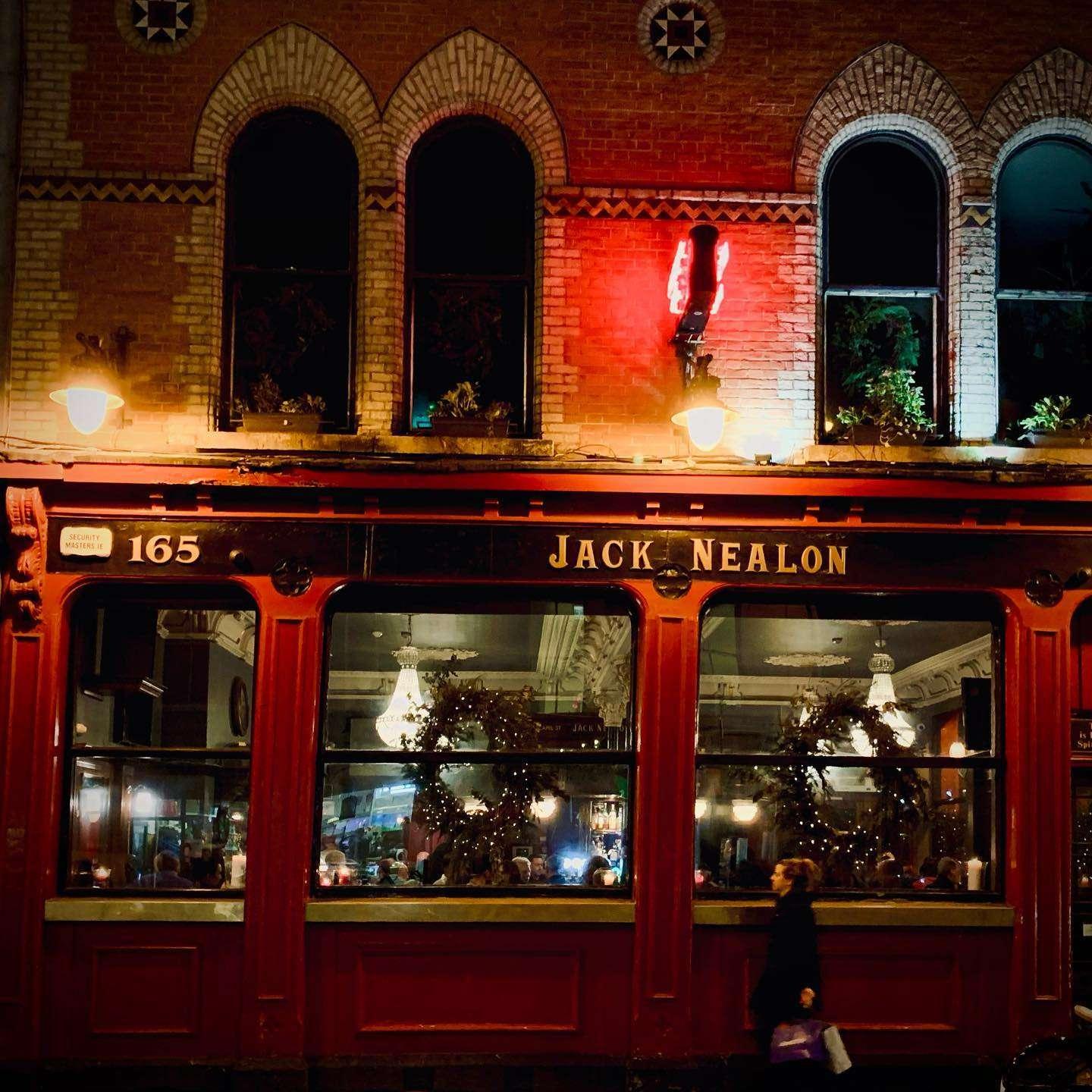Jack Nealons was first established in 1905 and the building dates back to the 18th century. The Building is a beautifully preserved authentic Georgian architecture and its 200 yr old gold gilted ceiling is one of the finest examples of ornate plaster work to be seen anywhere in Dublin. A large open hearth fire adds to the cosiness with subtle lighting creating an environment that allows for conversation and relaxation. The clientele is varied with both young and old.