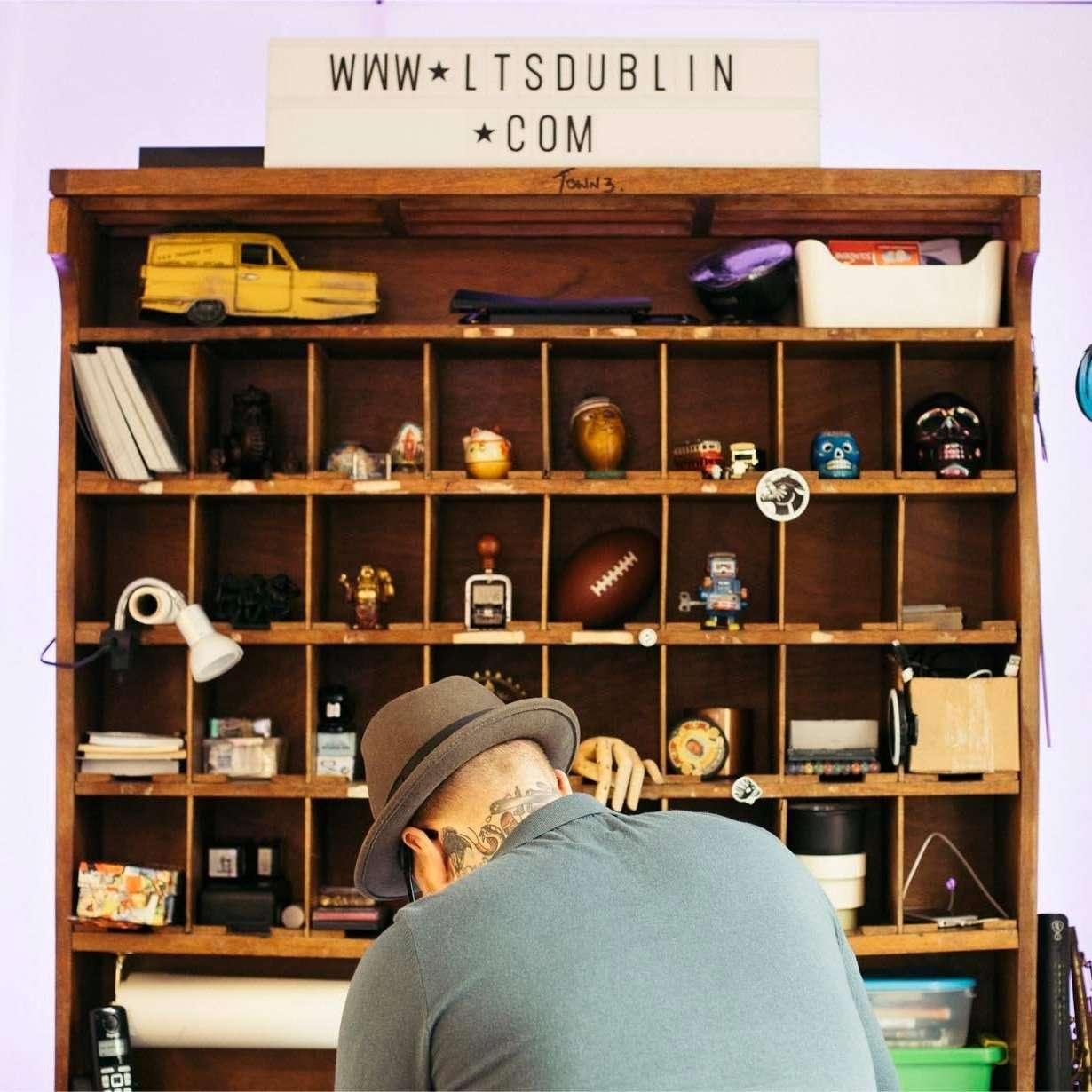 Being situated on Dame Street gives you the perfect opportunity to sit back with a coffee and watch the world go by, as one of their artists get ready for the job in hand.