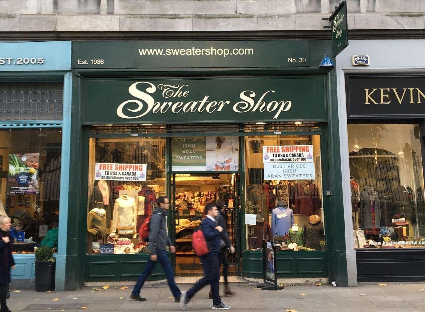 The Sweater Shop is a family run business which was established in 1986 by Dom Byrne who still runs the company to this day. Their large selection of superb quality Irish Aran knitwear at reasonable prices became so popular with locals and visitors that the business quickly expanded and now there are outlets in Dublin, Kilkenny and Galway city. The flagship store is in Dublin’s Nassau Street and is located directly across from Trinity College and is an absolute must for any visitor to Dublin City.
