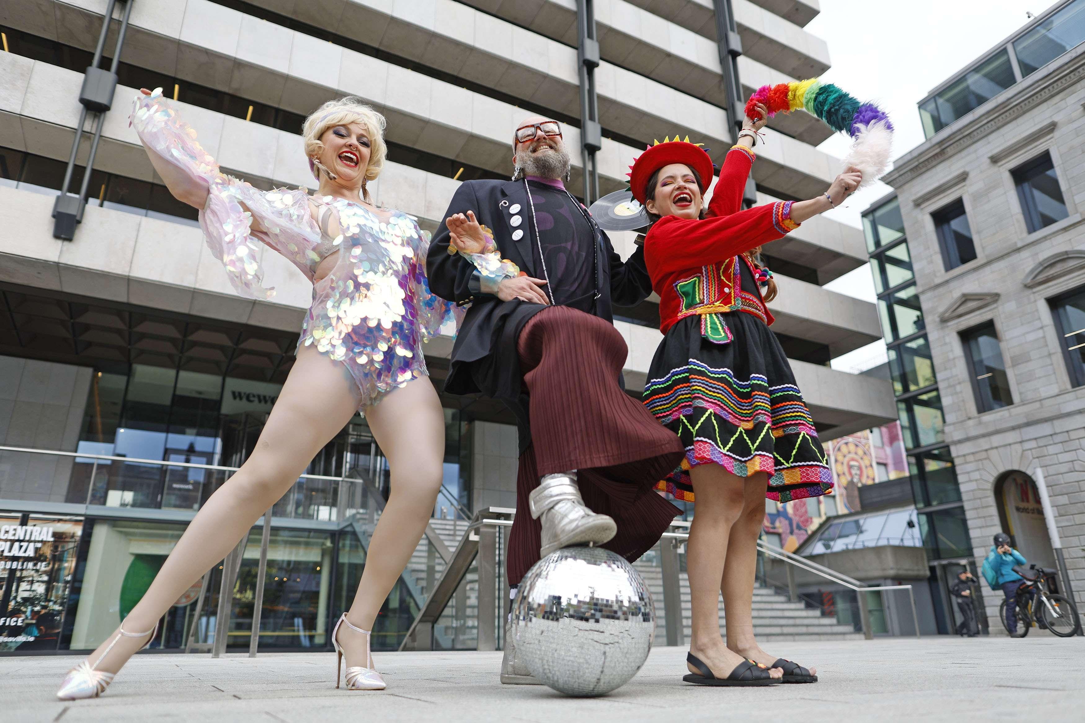 DJ Shrem pictured with disco dancers Climb the Walls Weird & Bella Agogo and Peruvian Dancers Maria Angelica ,Marilu Hickey and Claudia Grandez at Dublin’s Central Plaza. Thousands of people are expected to join the city-wide celebrations as Culture Night celebrates 20 years in the capital this Friday. Supported by Dublin City Council, Dublin’s Central Plaza and Capel Street will become open-air dancefloors on the night and Nocturnal Beats, a special late-night music trail, will offer free entry and exclusive DJ sets at some of the city’s most iconic venues. Over 300 Free events will take place across the city. Supported by the Arts Council of Ireland. See culturenight.ie